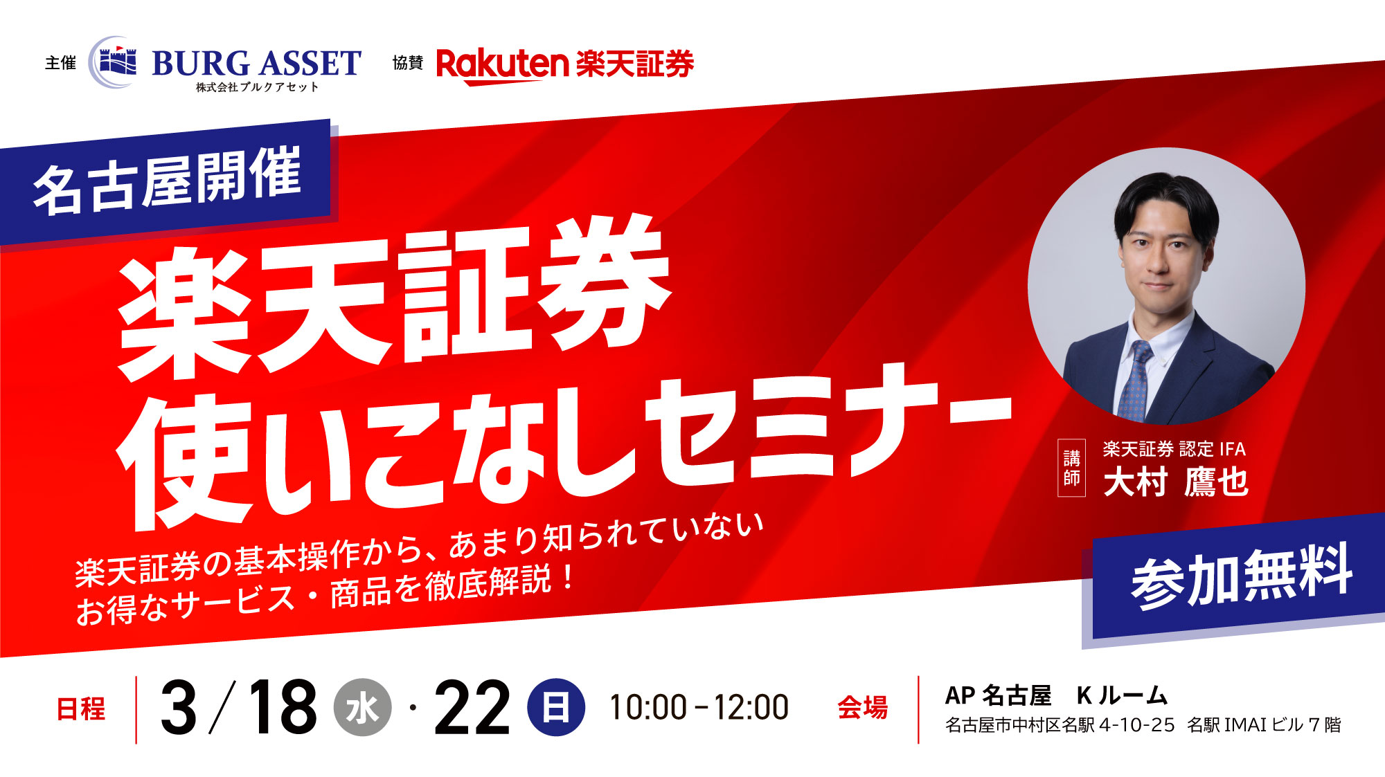 - A当セミナーとは関係のないセミナーである可能性が高いです。当セミナーは「楽天証券使いこなしセミナー」の名前以外では開催しておりません。